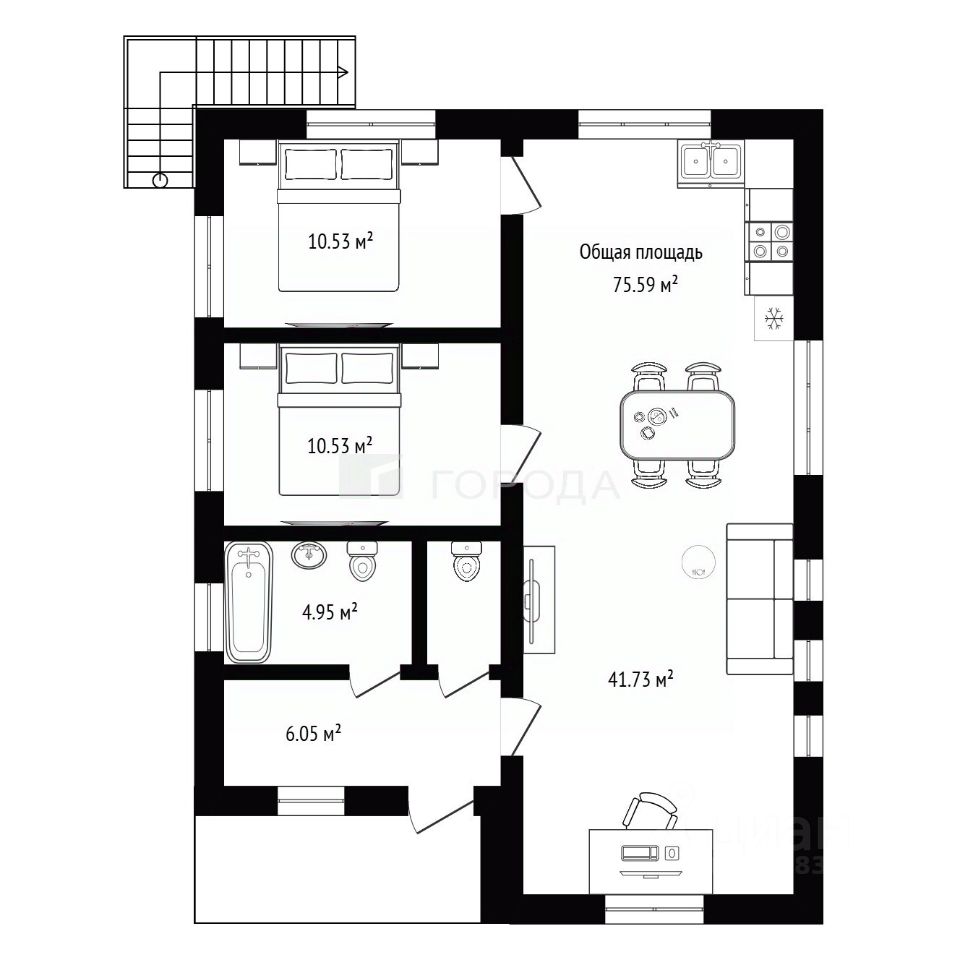 Общая площадь75,59 м2