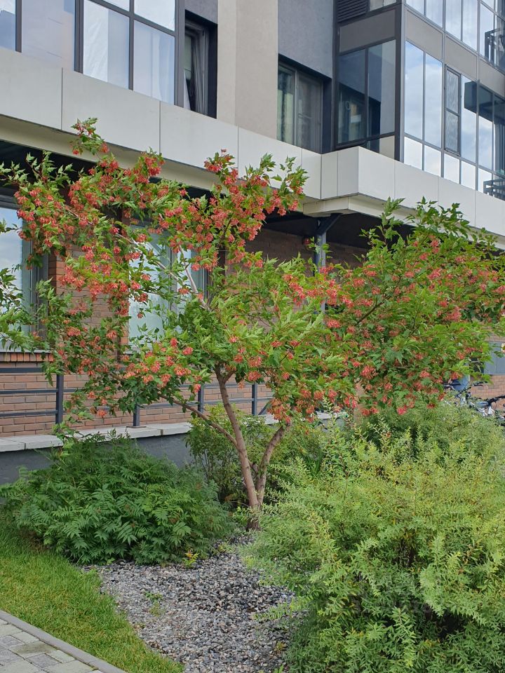 Два выхода из подъезда в парк и на парковку.