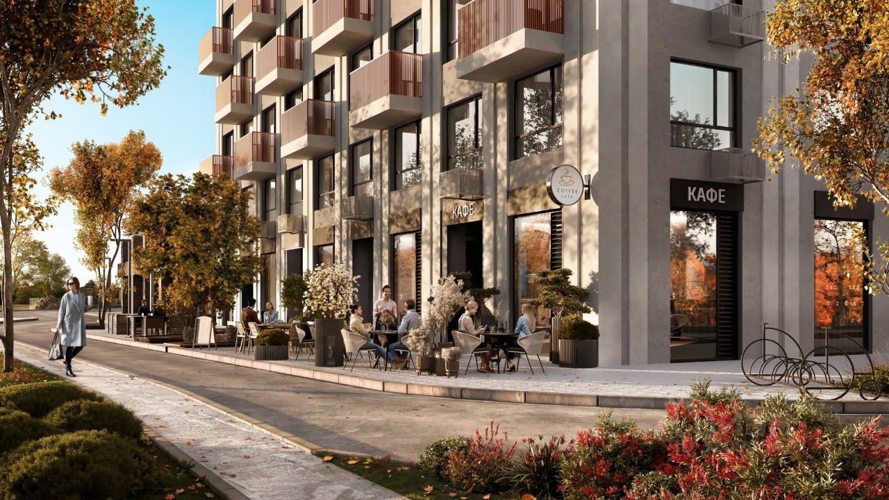 Свой приватный двор, окружённый зеленью, которая будет цвести весь год. Двор с релакс-пространством, спортивной зоной с воркаут и настольным теннисом. Детская площадка из природных материалов.