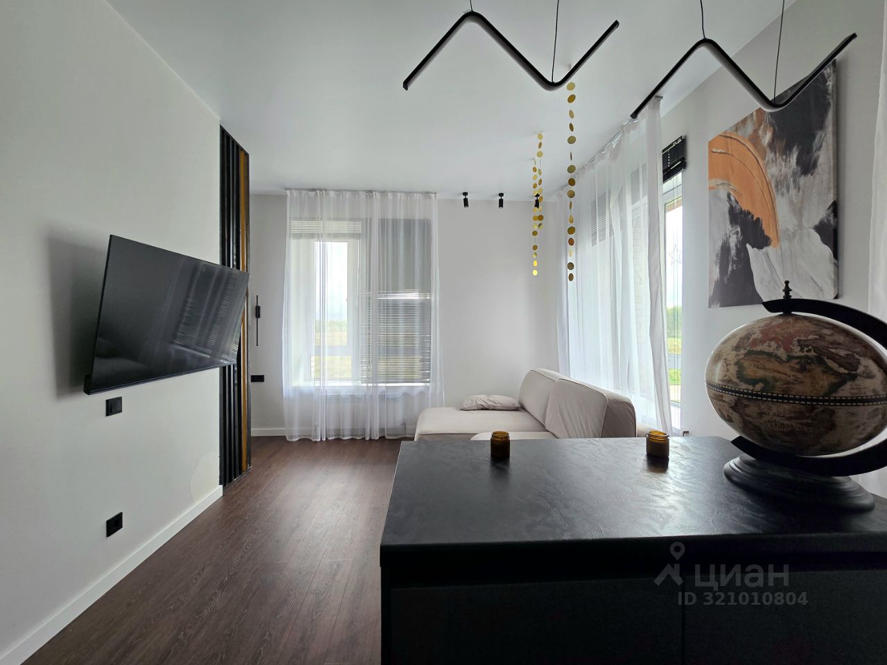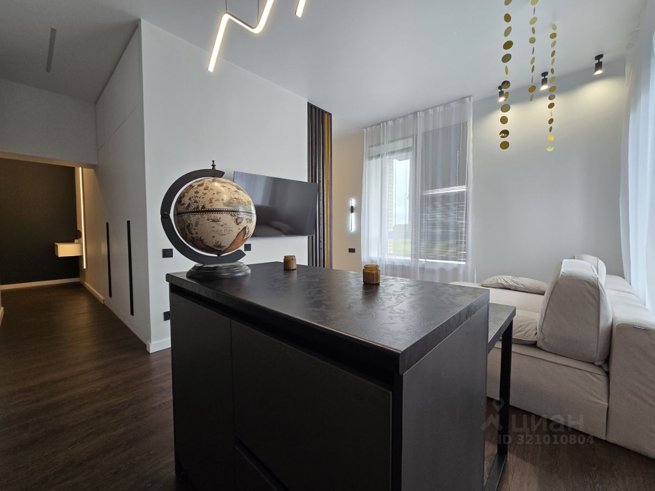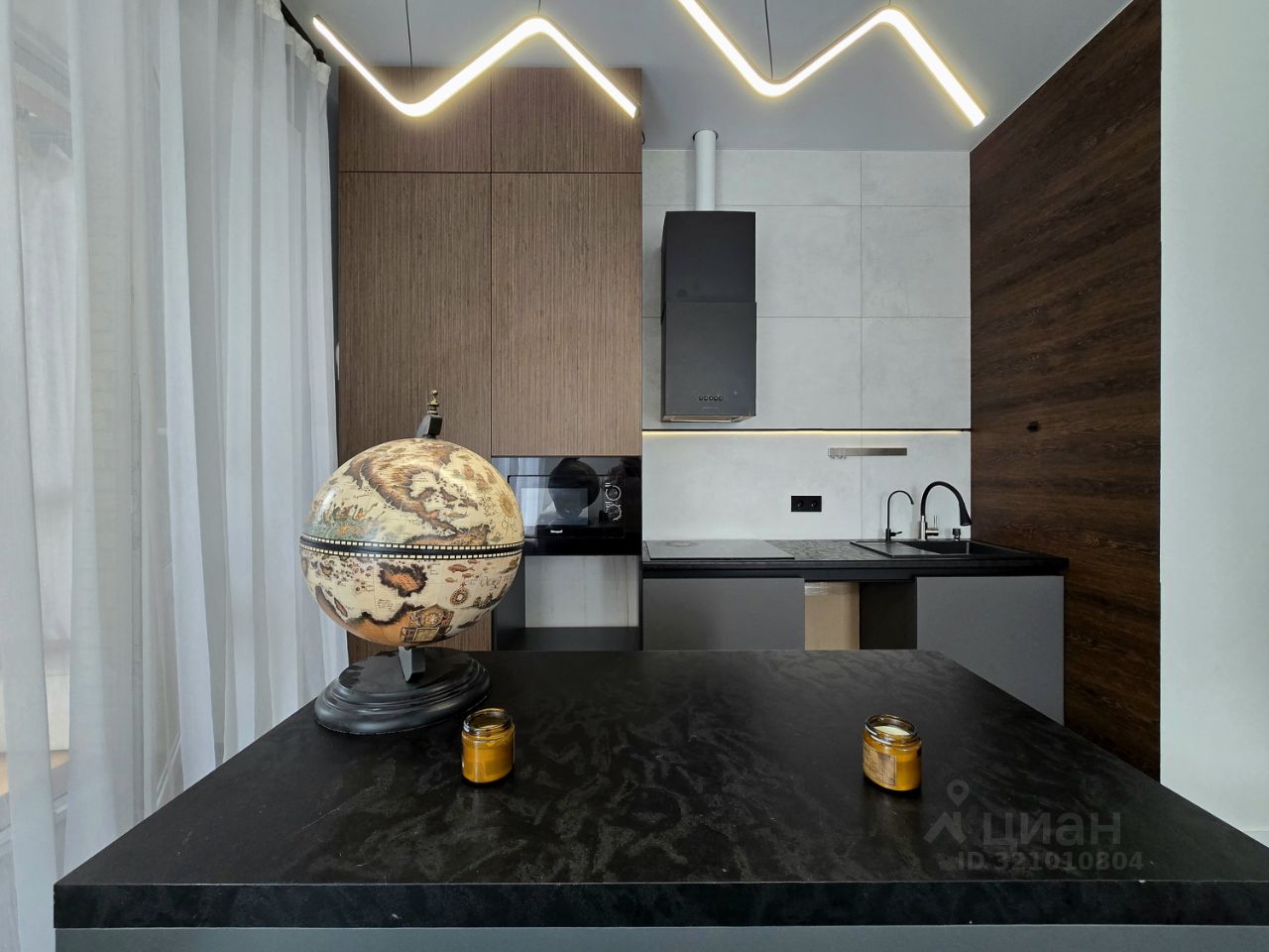 'В квартире предусмотрены различные варианты освещения и подсветок, 'удобный раскладной диван, 'кухонный гарнитур с островом отличается вместительностью и функциональностью. 'Вся техника встроенная. 'Балкон - особое пространство, которое в Спектре принято украшать и использовать для отдыха. 'Дополнительная мебель обсуждается.
