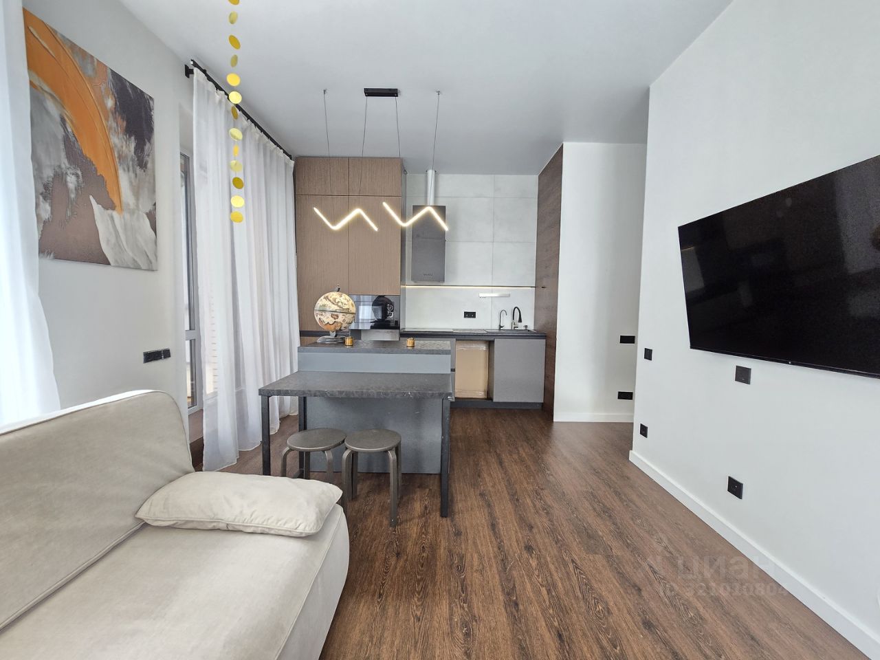 Предлагаю к аренде уютное гнездышко. Квартира представляет студийный вариант с тремя зонами: гостиной, кухней и отделенного пространства, которое можно обустроить как кабинет, спальню или детскую.