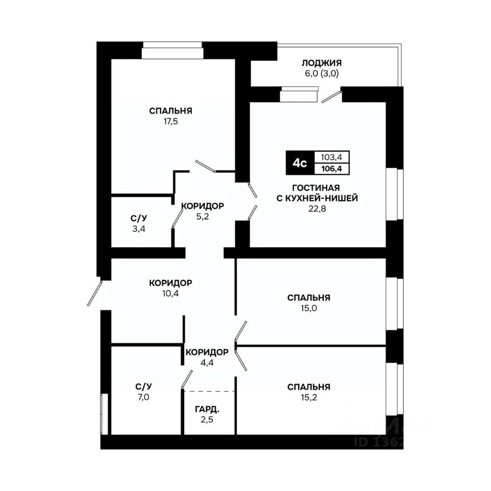 Общая площадь106,4 м2