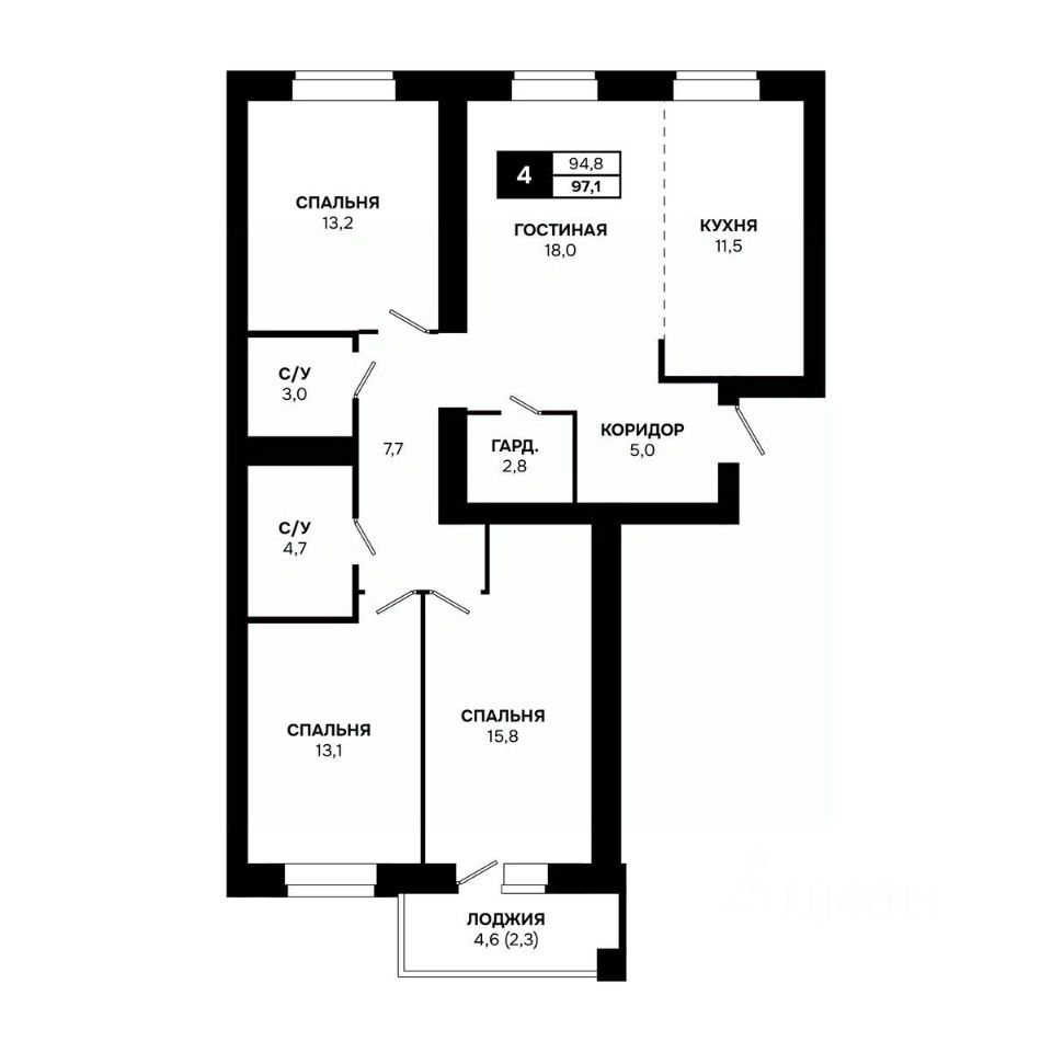 Общая площадь97,1 м2