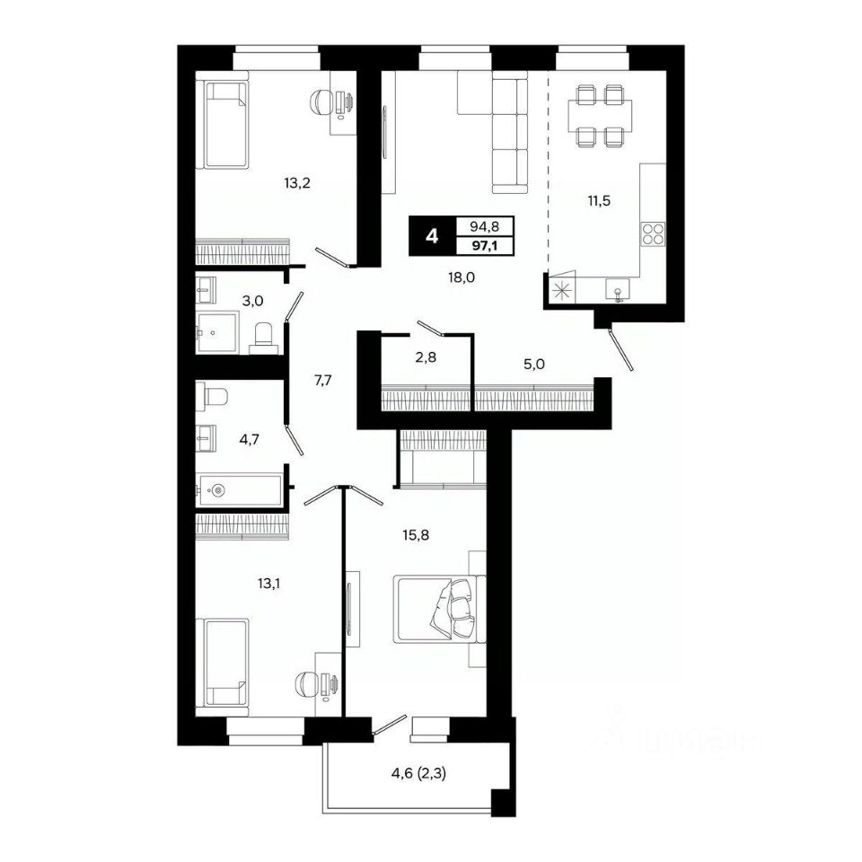 Общая площадь97,1 м2
