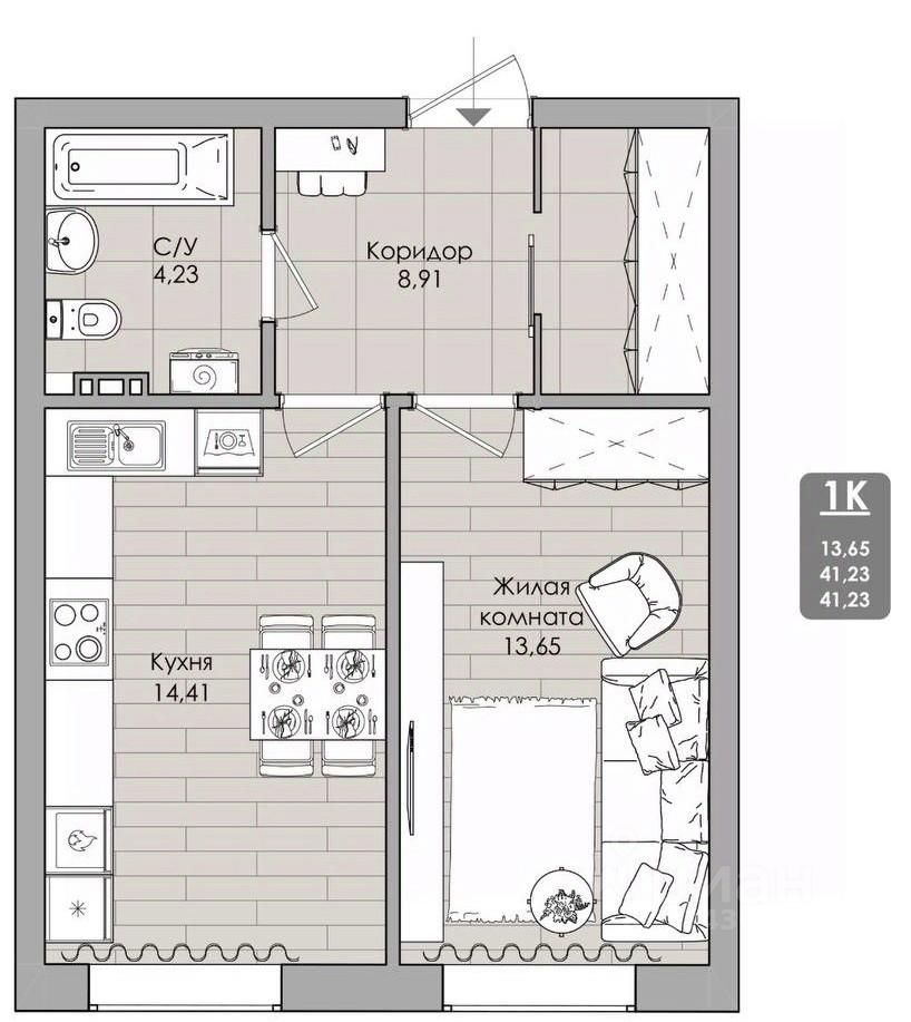 Общая площадь40,7 м2