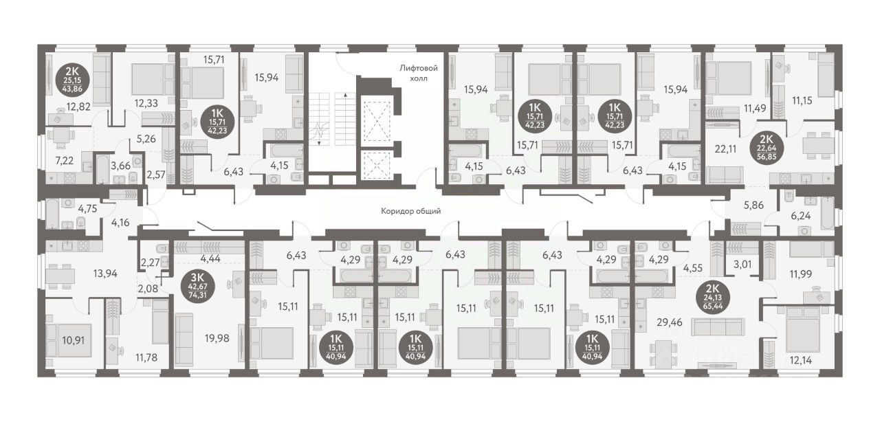 Жилая площадь42,7 м2
