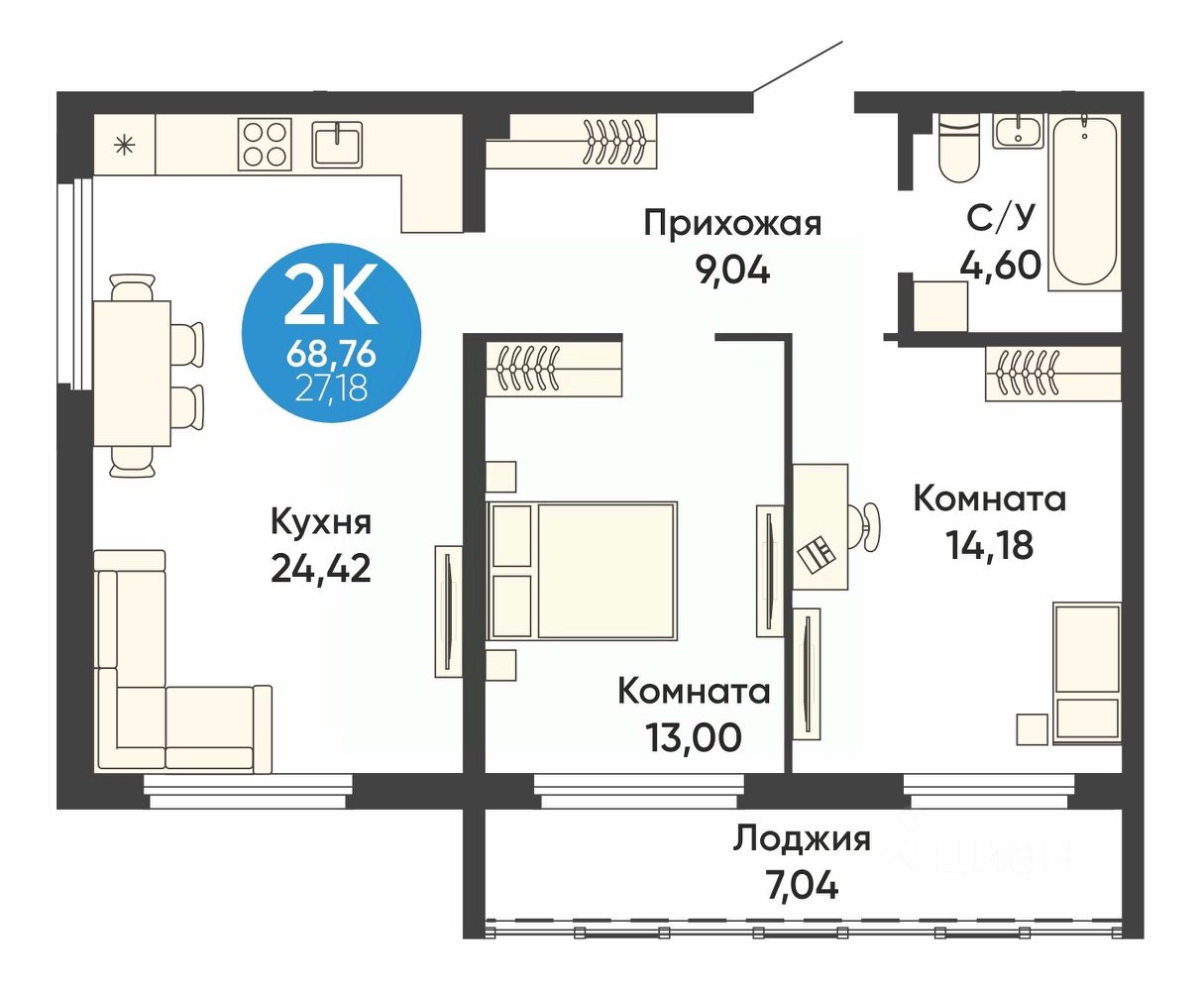 Общая площадь68,76 м2