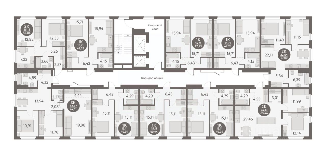 Жилая площадь42,7 м2