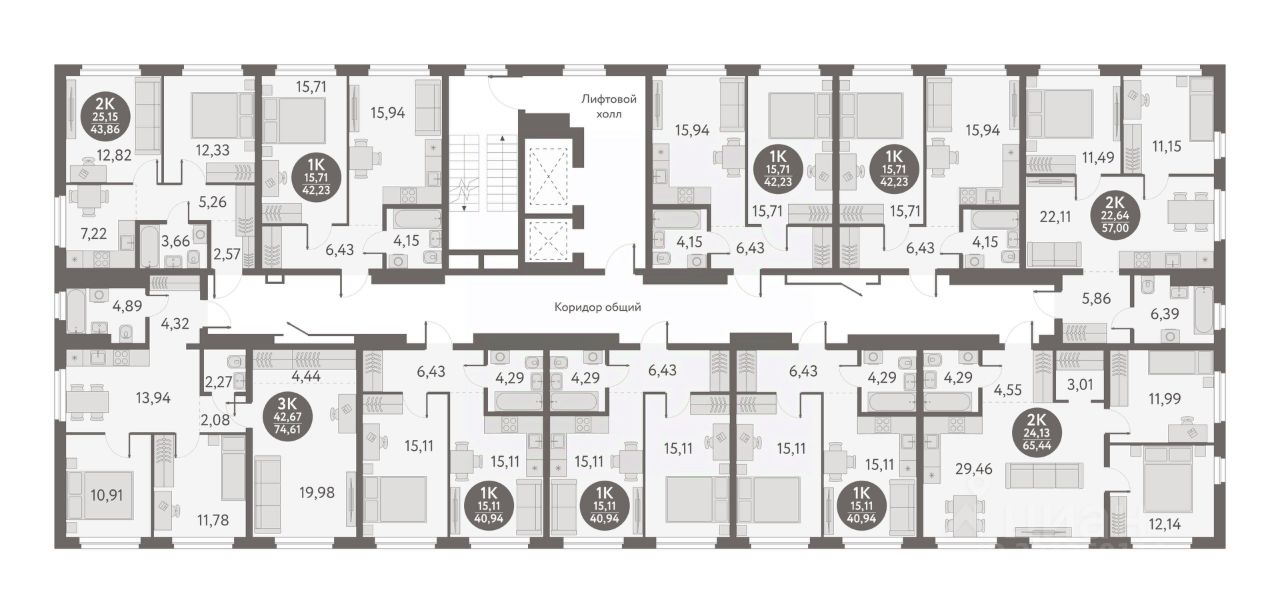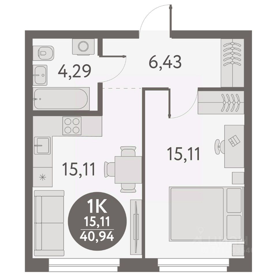 Общая площадь40,94 м2