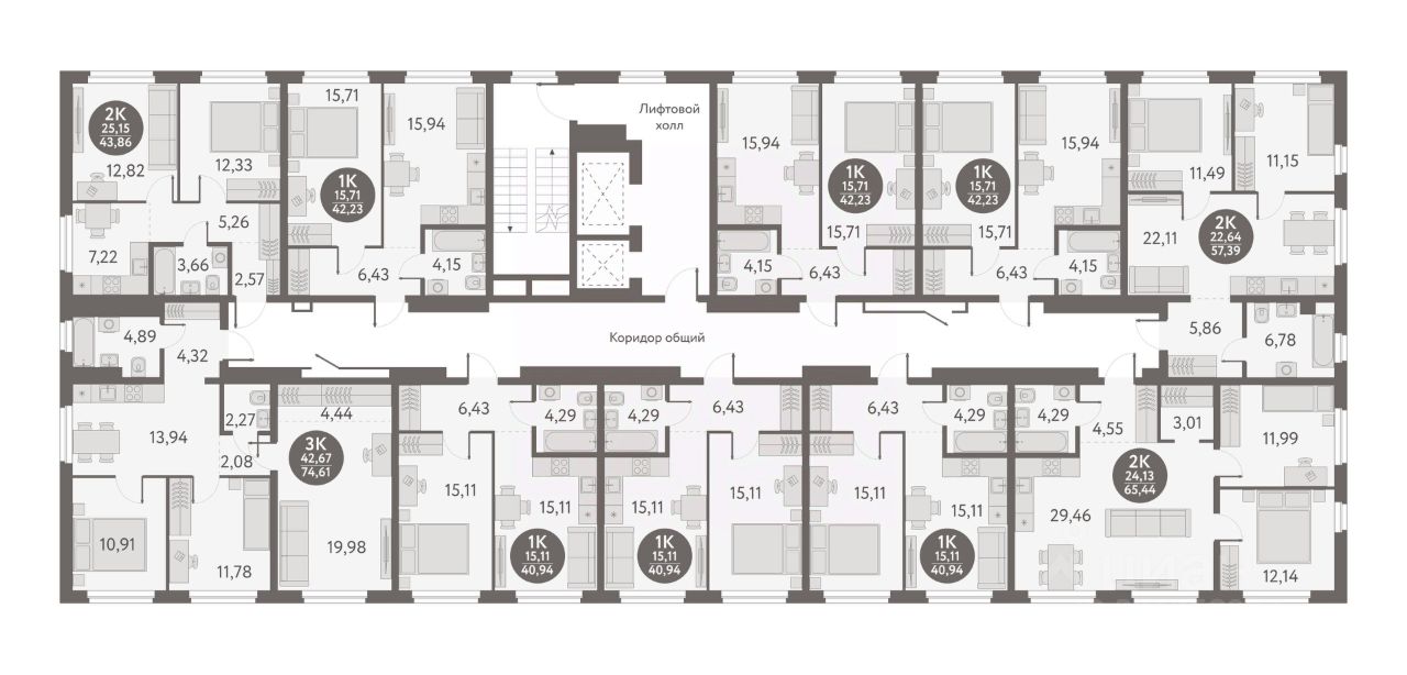 Общая площадь65,44 м2
