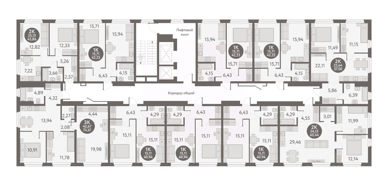 Общая площадь42,23 м2