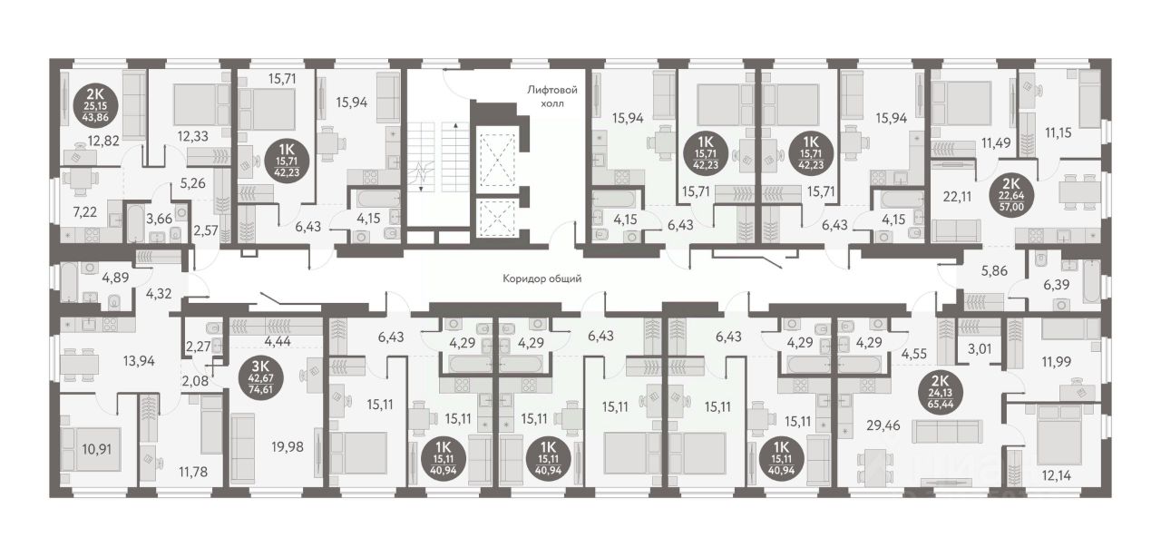 Общая площадь40,94 м2