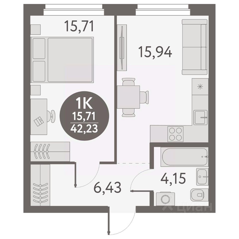 Общая площадь42,23 м2