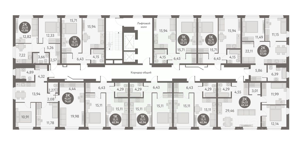 Жилая площадь42,7 м2