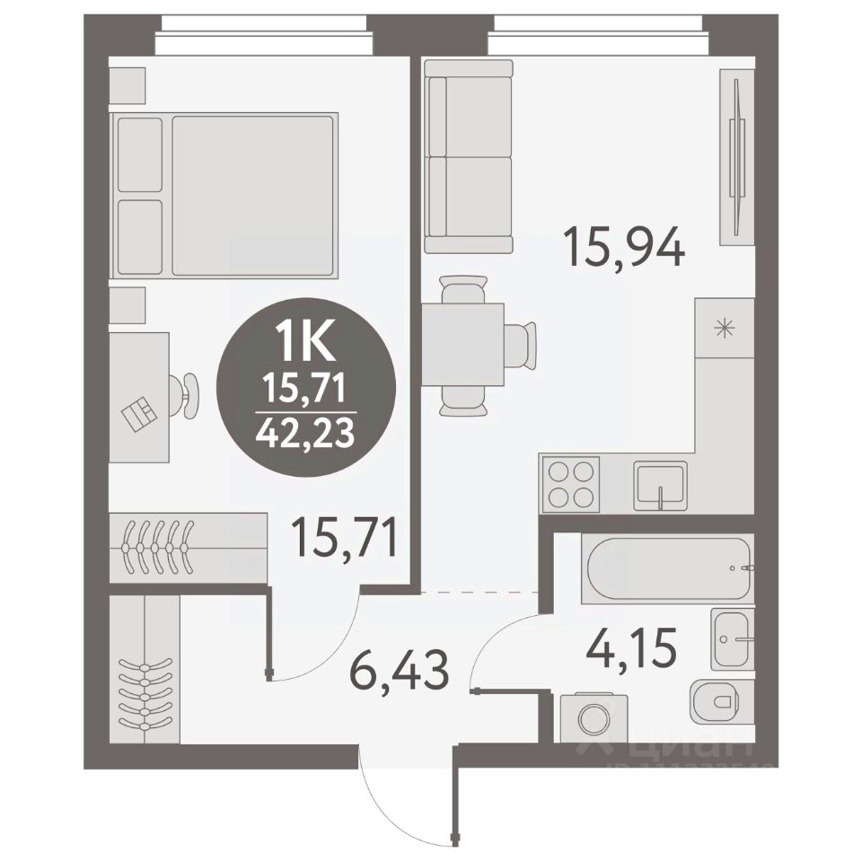Общая площадь42,23 м2
