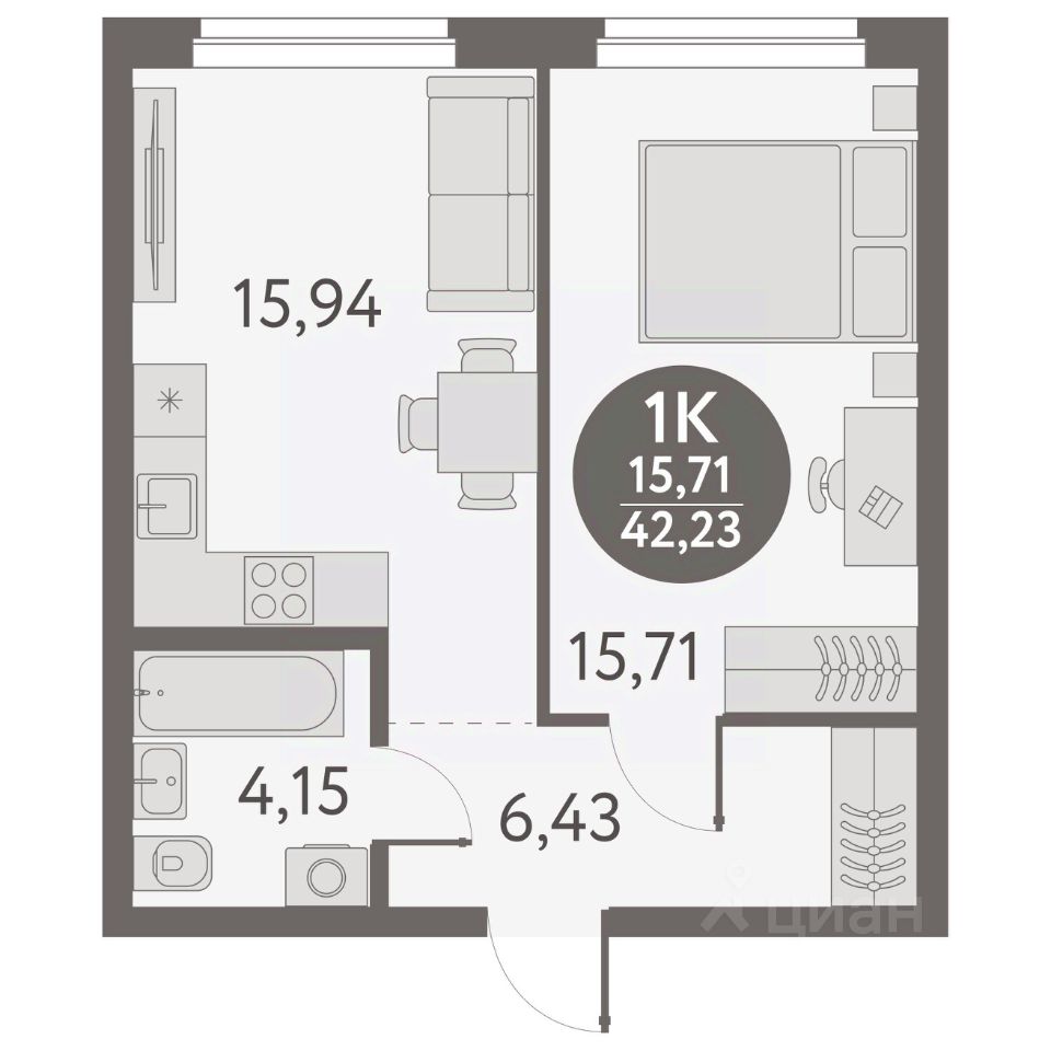 Общая площадь42,23 м2