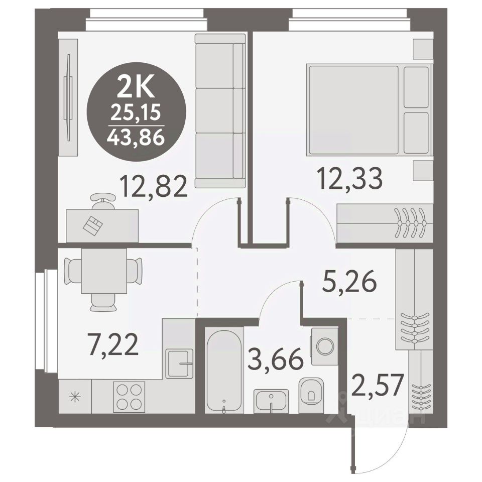 Общая площадь43,86 м2