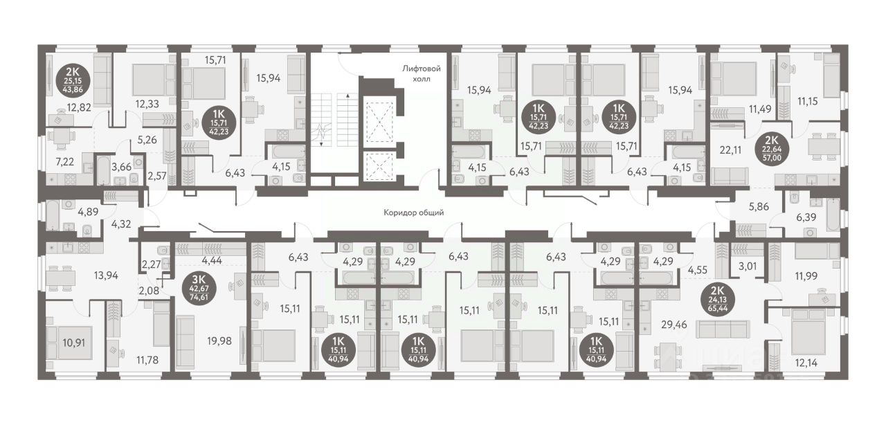 Жилая площадь25,2 м2