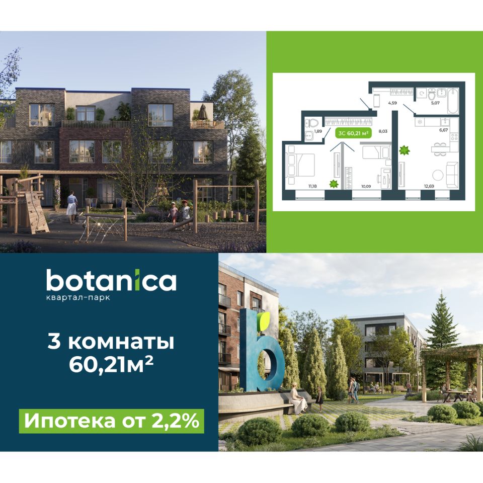 Квартира в квартале-парке комфорт-класса ''Ботаника'' (Кольцово, Новосибирск).