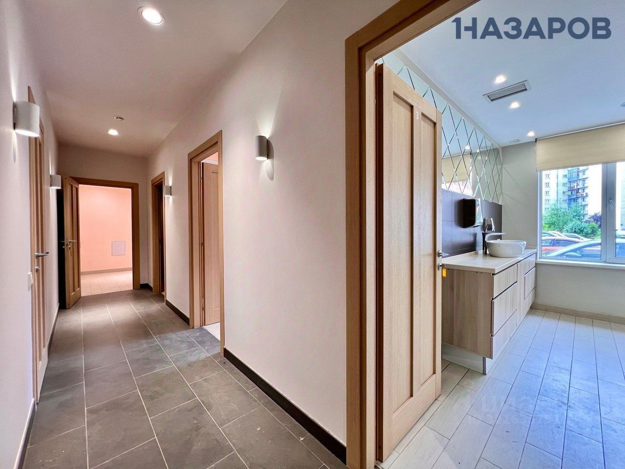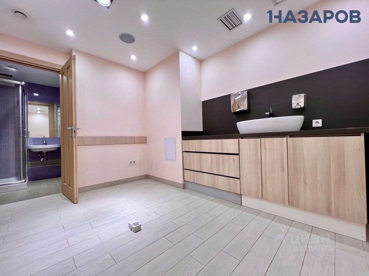 Интерьер: Находится в идеальном интерьерном состоянии. Поделено на кабинеты, с заведёнными мокрыми точками, в каждый из них. В кабинетах установлены дорогостоящая встроенная мебель, раковины, кондиционеры, освещение. Имеется душ и два санузла.