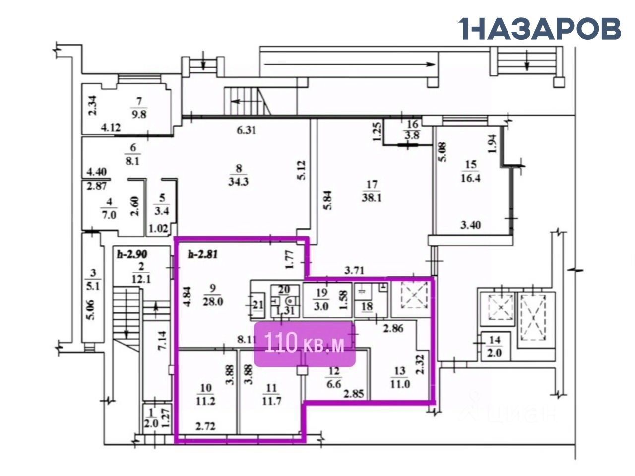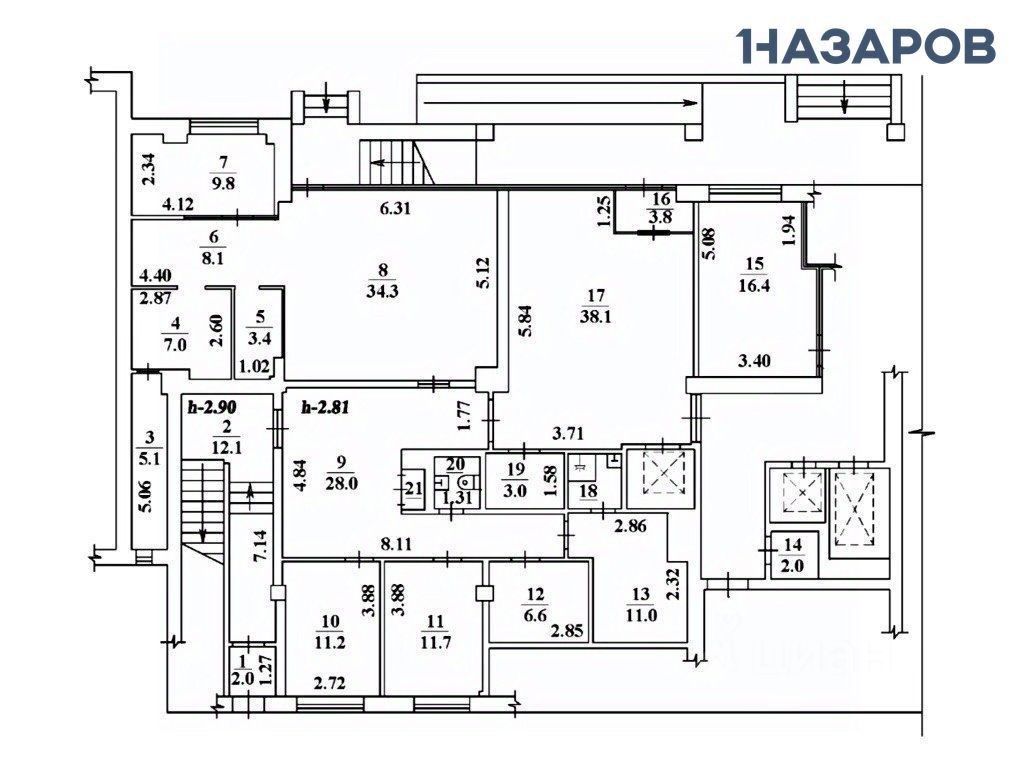 Высота потолка: 3,3 м