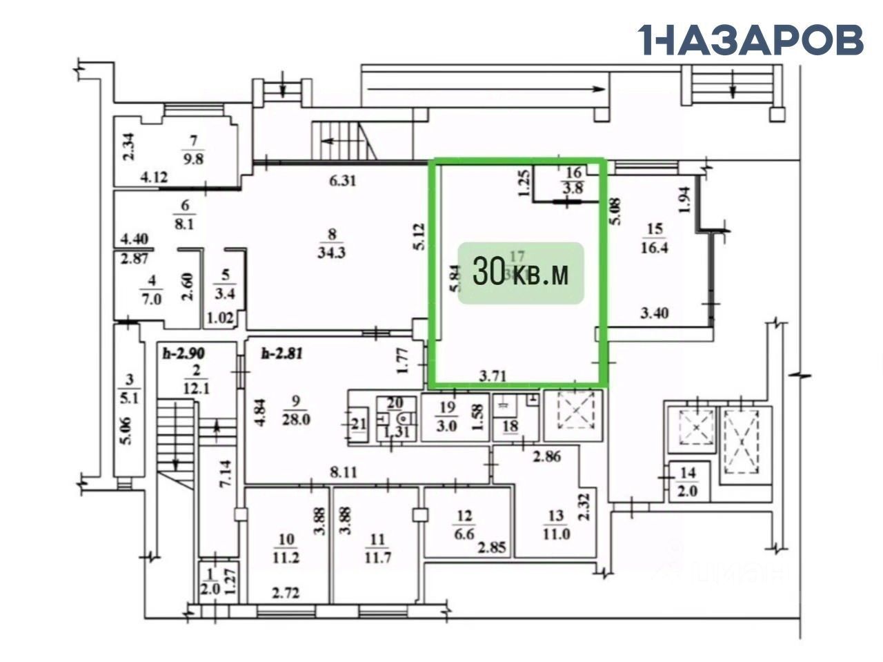 Общая площадь: 140 м². Возможен вариант деления на 110 м² и 30 м².