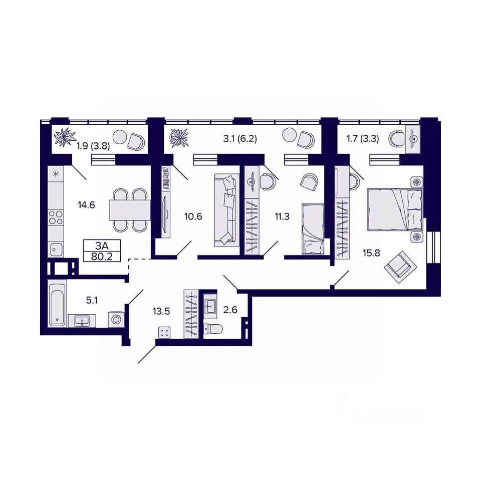 Продаётся просторная трехкомнатная квартира площадью 80.2 квадратных метров на пятом этаже нового монолитного дома, расположенного по адресу: город Новосибирск, улица Фрунзе, 220.