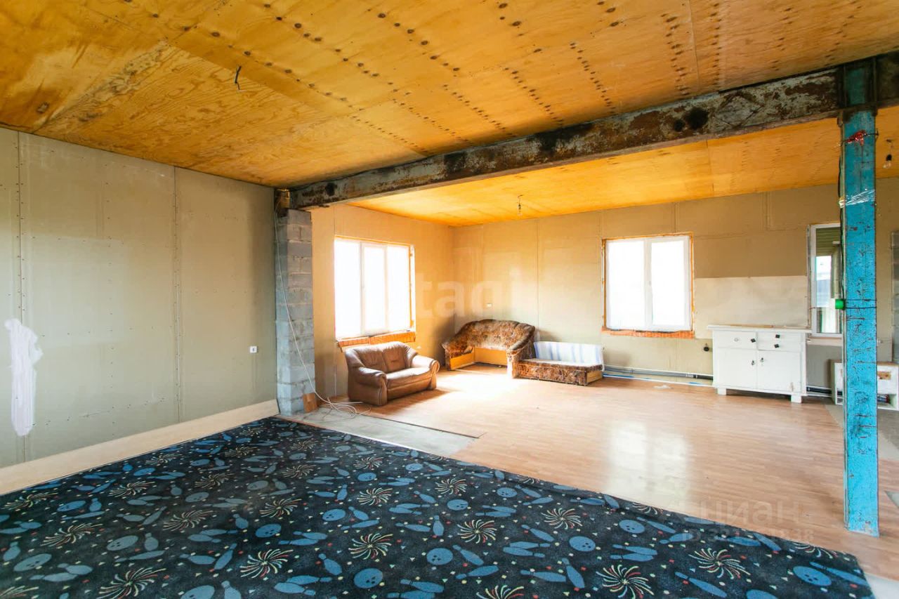 Кухонная зона 9*9м с устройством теплого пола, две просторные комнаты размером 9*4м, коридор, туалет, помещение для сауны (выведены сливы), пристройка + подвальное помещение 4,5*7,5м.