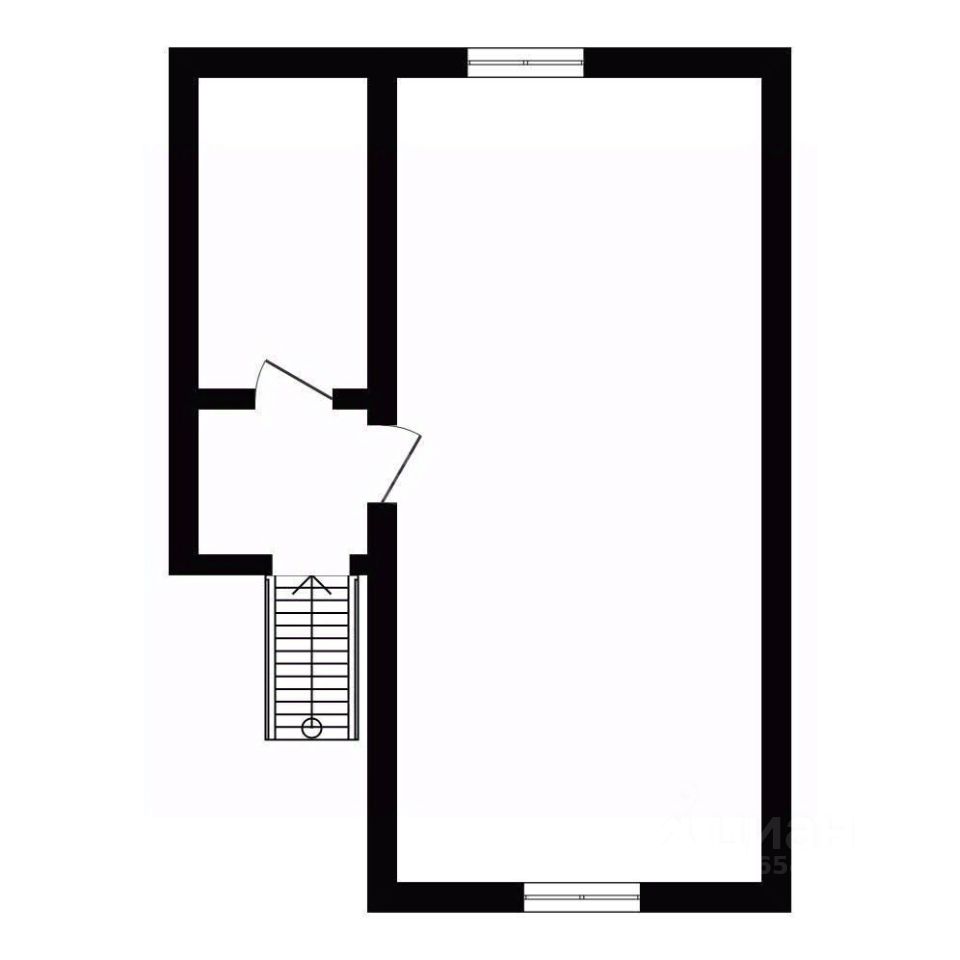 Главная особенность дома — собственная баня с душем и предбанником, что создает дополнительный комфорт для проживания. Планировка простая и функциональная: на первом этаже расположена просторная кухня и большая комната, второй этаж занимает ещё одно светлое помещение с высокими потолками, которое можно использовать как гостиную, спальню или кабинет. Большие окна обеспечивают естественное освещение и открывают вид на природу.