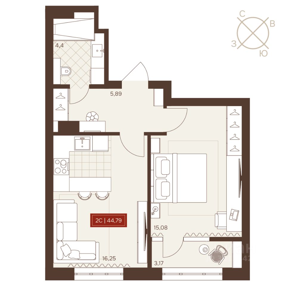 Общая площадь44,79 м2