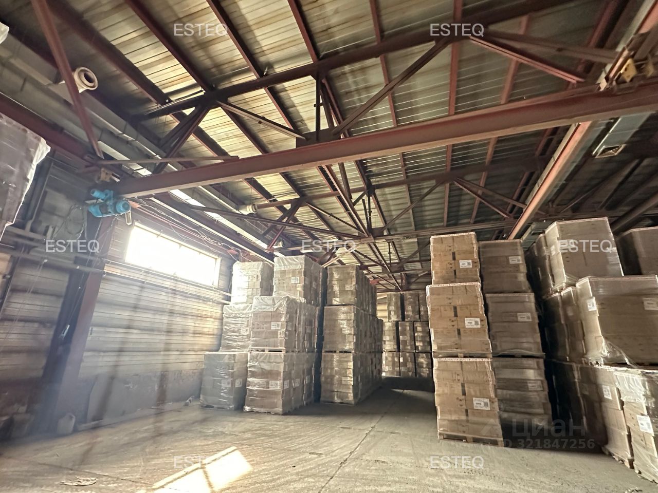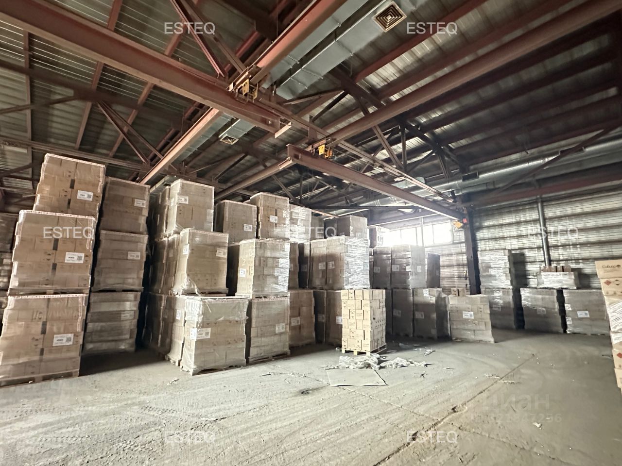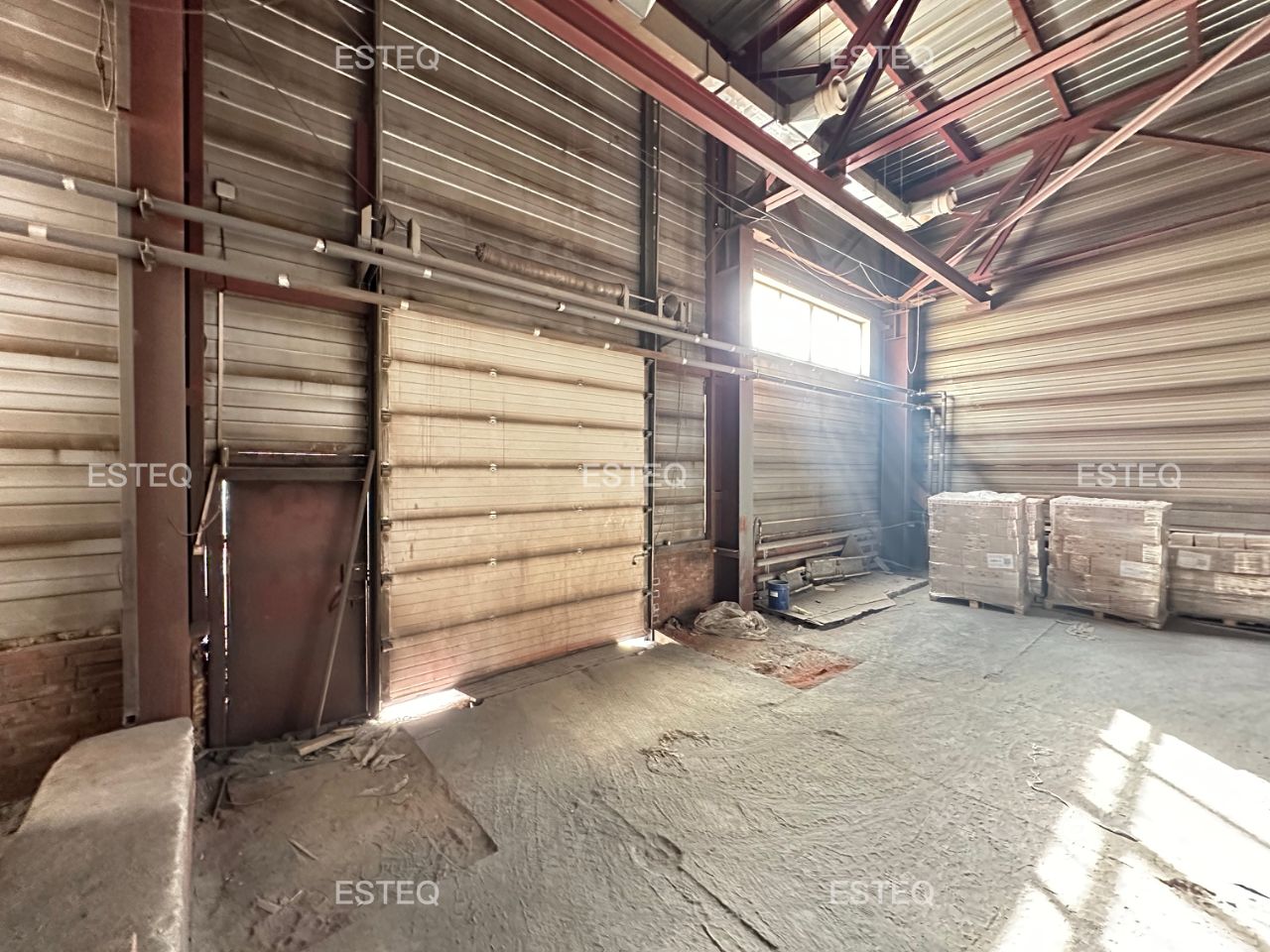 Технические характеристики: - Общая площадь 1 200 м2, - 2 ворот (высота 3,6 м), - Ворота на нулевой отметке, - Высота потолка 5,8 м до фермы, - 2 кран-балки на 2т, - Пол бетонные плиты, - Электрическая мощность 150 кВт, - Вентиляция, - Площадка для маневрирования большегрузных машин, - Огороженная территория, КПП.