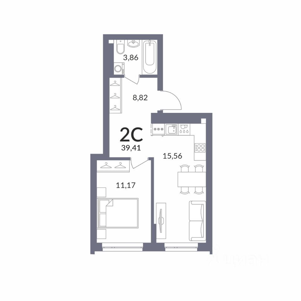 Общая площадь39,34 м2