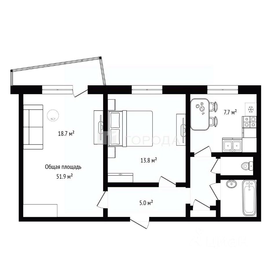 Продаётся светлая и уютная двухкомнатная квартира общей площадью 51,9 кв. м на Рассветной улице, 4/1. Жилая площадь составляет 32,5 кв. м, а кухня — 7,7 кв. м. Комнаты изолированы, что обеспечивает комфорт и уединение. Квартира находится в угловом расположении, а окна выходят на улицу.