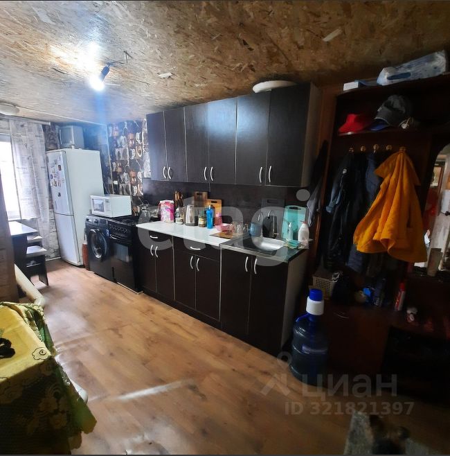 Дом в жилом состоянии. зимой тепло. В доме две спальни, гостиная и кухня, почти все что есть на фото остается новым владельцам. Есть не отапливаемая прихожая. Вода-скважина, отопление печное-водяное ( хороший котел),канализация-септик, окна пластиковые по всему дому. На просторном участке 9,6 соток иметься баня, кладовка, углярка под одной крышей. Бане 5 лет, стоит хорошая печь. Парковка под 2-3 машины, есть вольер для собак. На участке имеется теплица из поликарбоната, ягодные кустарники и цветы. Участок огорожен забором. В шаговой доступности сетевые супермаркеты, не большие магазины у дома. Фельдшерско-акушерский пункт, районная больница 1. Три детских сада, две школы. По поселку ходит школьный автобус.