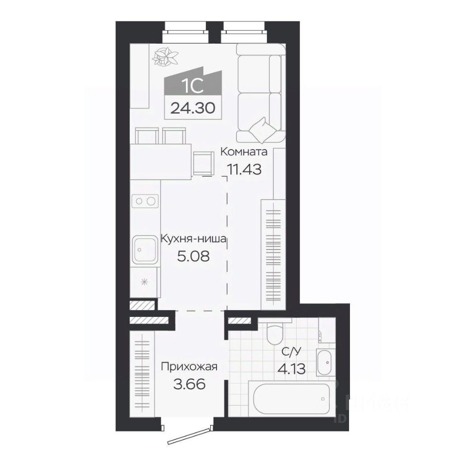 Продаётся 1-комнатная квартира в строящемся доме (Дом 3), срок сдачи: IV-кв. 2027, общей площадью 24.3 кв.м., на 2 этаже. Новый жилой комплекс ''Базилик'' от застройщика ''Группа Мета'' расположен в рп. Краснообск Новосибирской области на ул. Восточная.