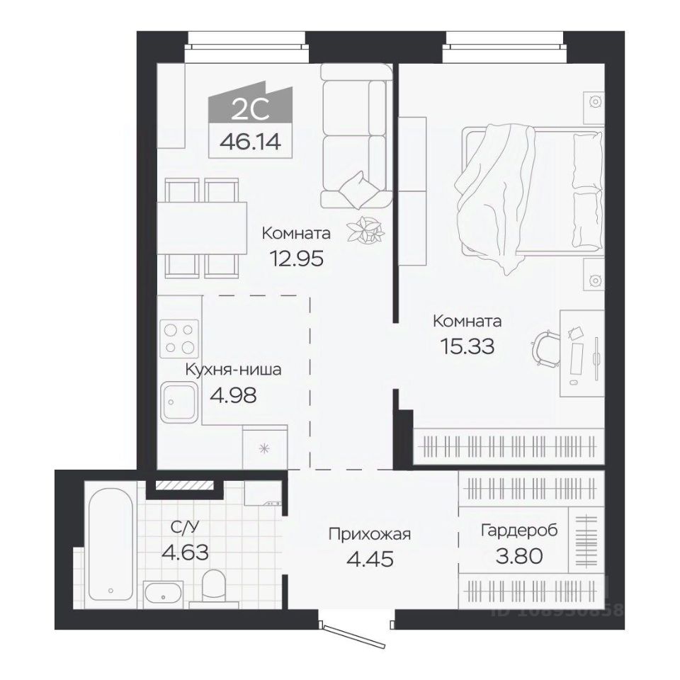 Продаётся 2-комнатная квартира в строящемся доме (Дом 3), срок сдачи: IV-кв. 2027, общей площадью 46.14 кв.м., на 8 этаже. Новый жилой комплекс ''Базилик'' от застройщика ''Группа Мета'' расположен в рп. Краснообск Новосибирской области на ул. Восточная.