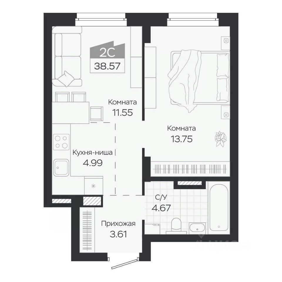 Продаётся 2-комнатная квартира в строящемся доме (Дом 3), срок сдачи: IV-кв. 2027, общей площадью 38.57 кв.м., на 8 этаже. Новый жилой комплекс ''Базилик'' от застройщика ''Группа Мета'' расположен в рп. Краснообск Новосибирской области на ул. Восточная.