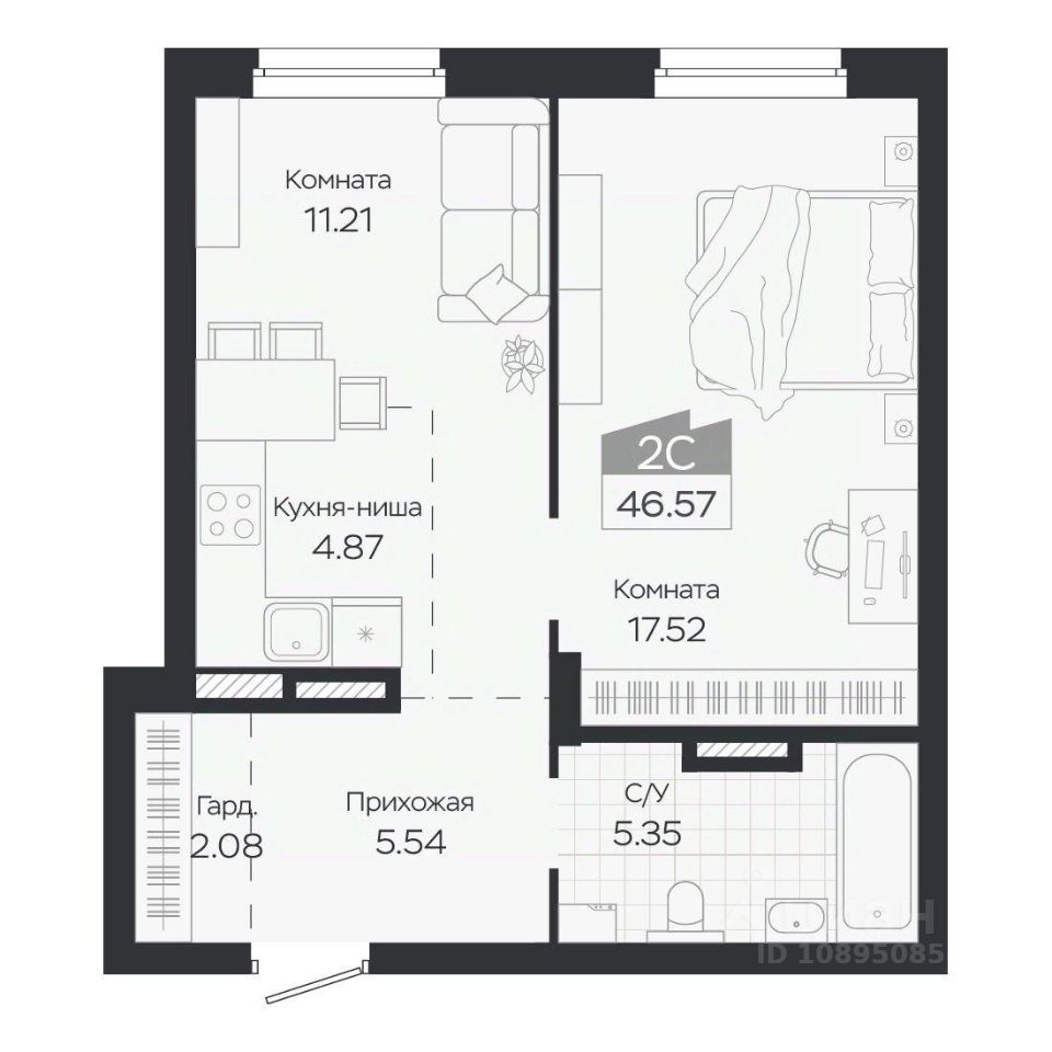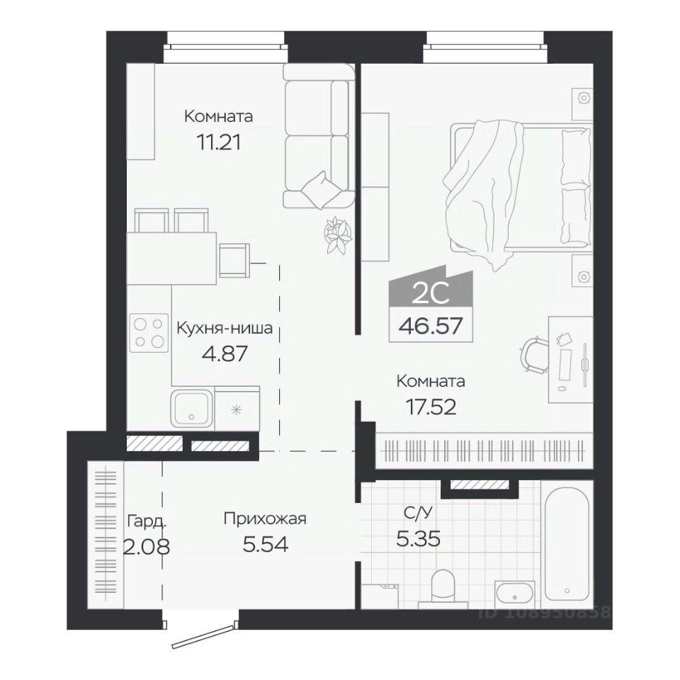 Продаётся 2-комнатная квартира в строящемся доме (Дом 3), срок сдачи: IV-кв. 2027, общей площадью 46.57 кв.м., на 8 этаже. Новый жилой комплекс ''Базилик'' от застройщика ''Группа Мета'' расположен в рп. Краснообск Новосибирской области на ул. Восточная.