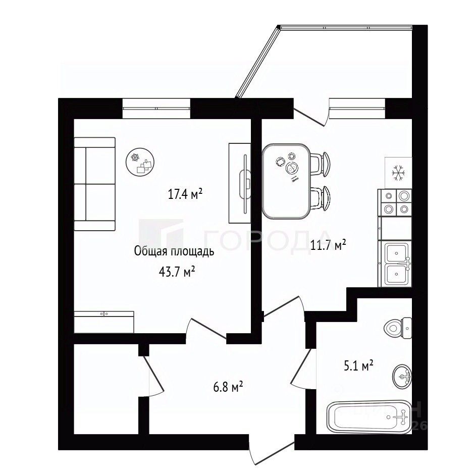 продам 1-к, Семьи Шамшиных, 24/29 200 000 ₽