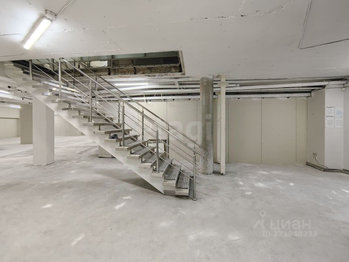 Помещение имеет два уровня, соединенных лестницей. Так же имеется лифт для перемещения между этажами. Помещение можно разделить.