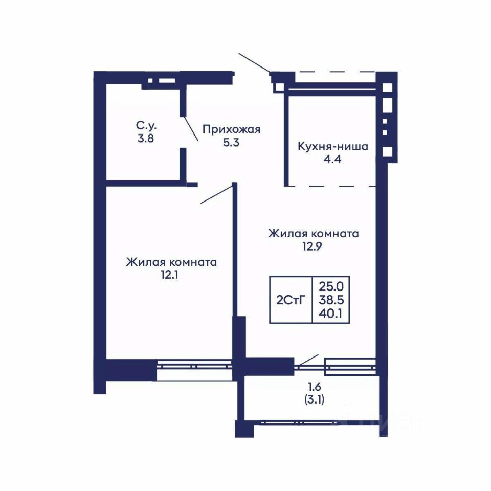 Общая площадь40,1 м2
