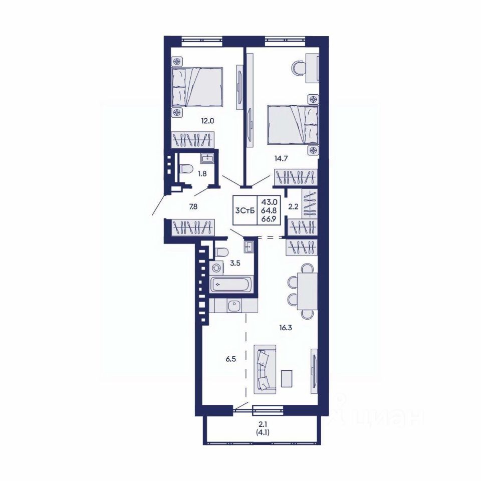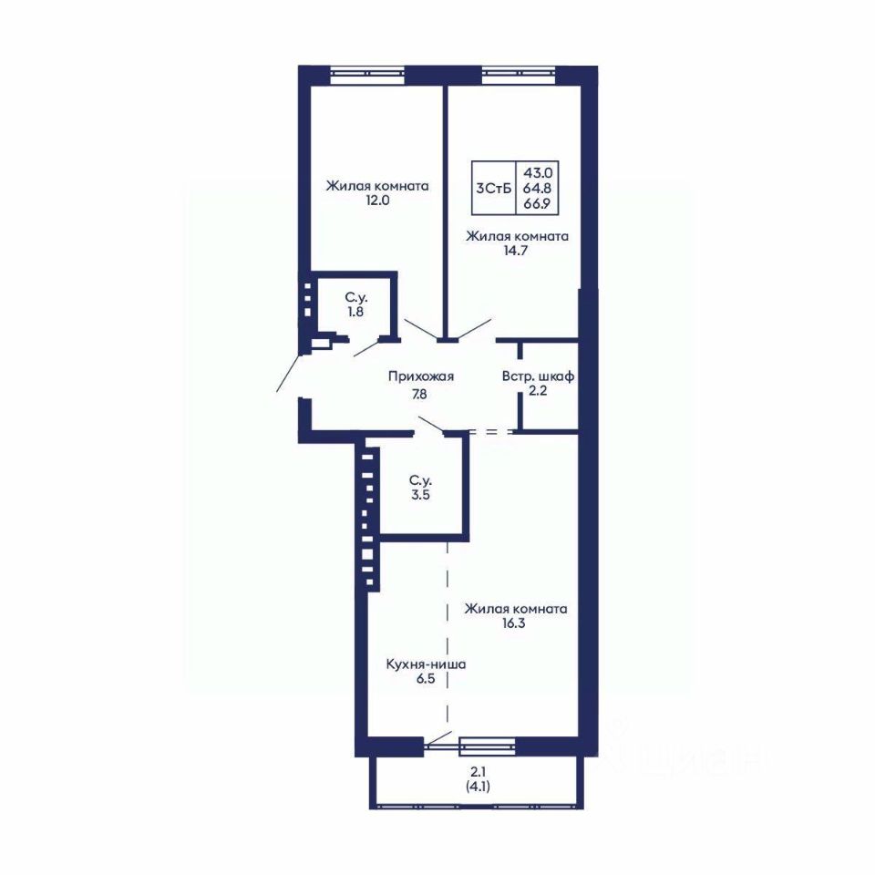 Общая площадь66,9 м2
