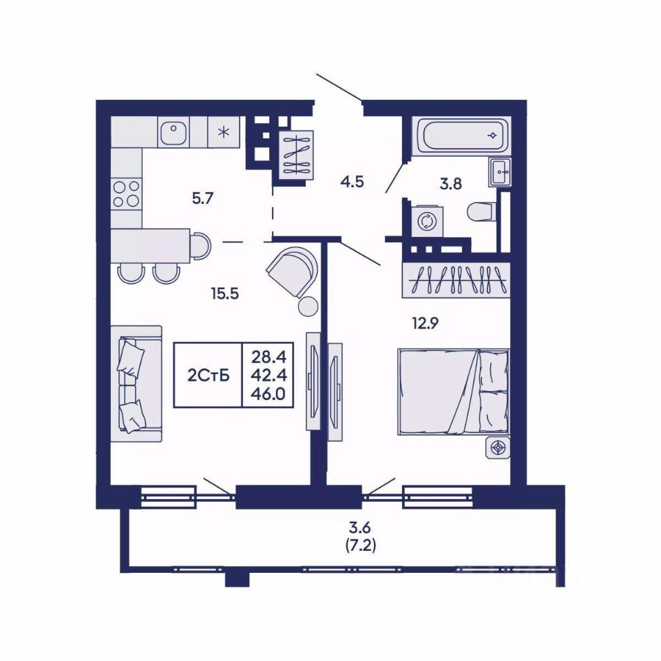 Общая площадь46 м2