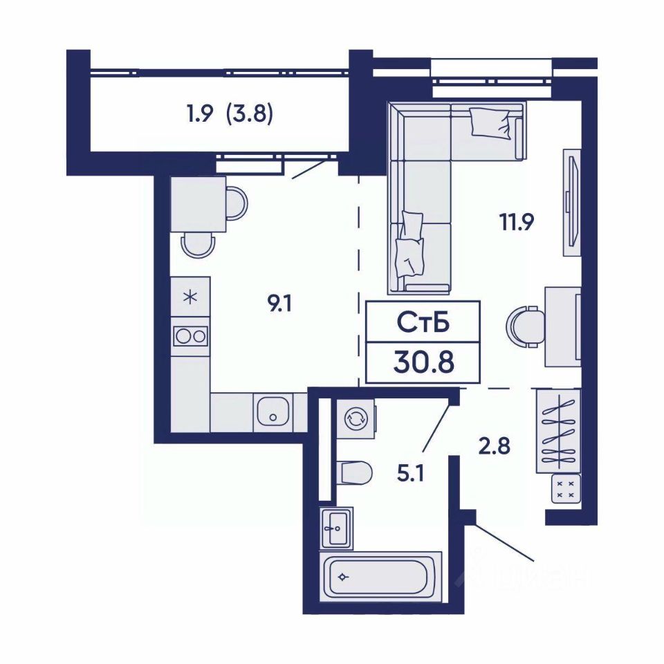 Для Вас в ЖК Gorizont есть квартира с ремонтом (1-комнатная квартира 85, 38,9 кв²)!