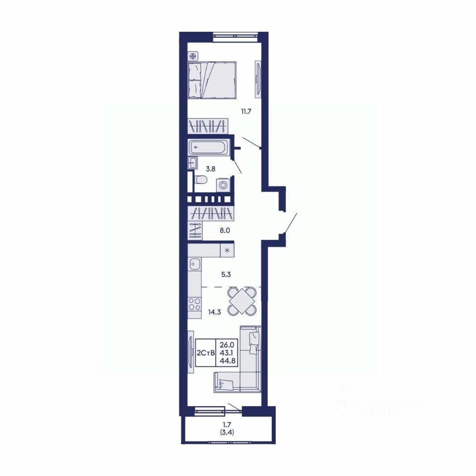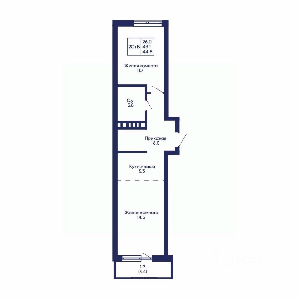 Общая площадь44,8 м2