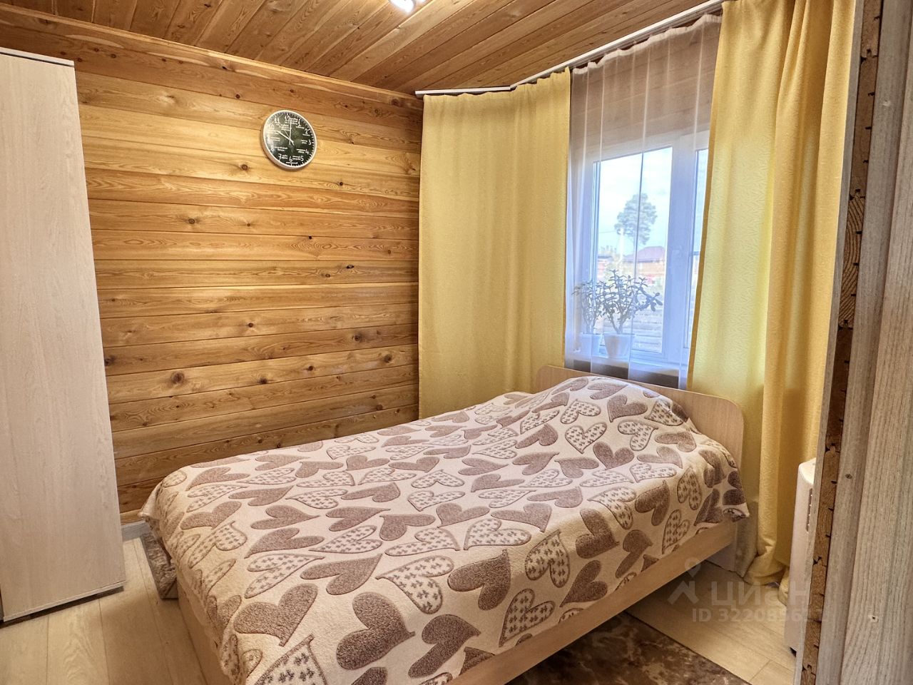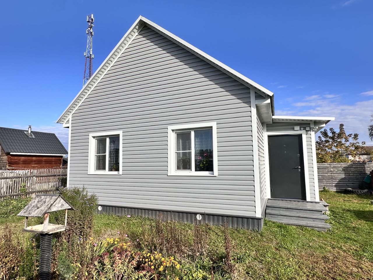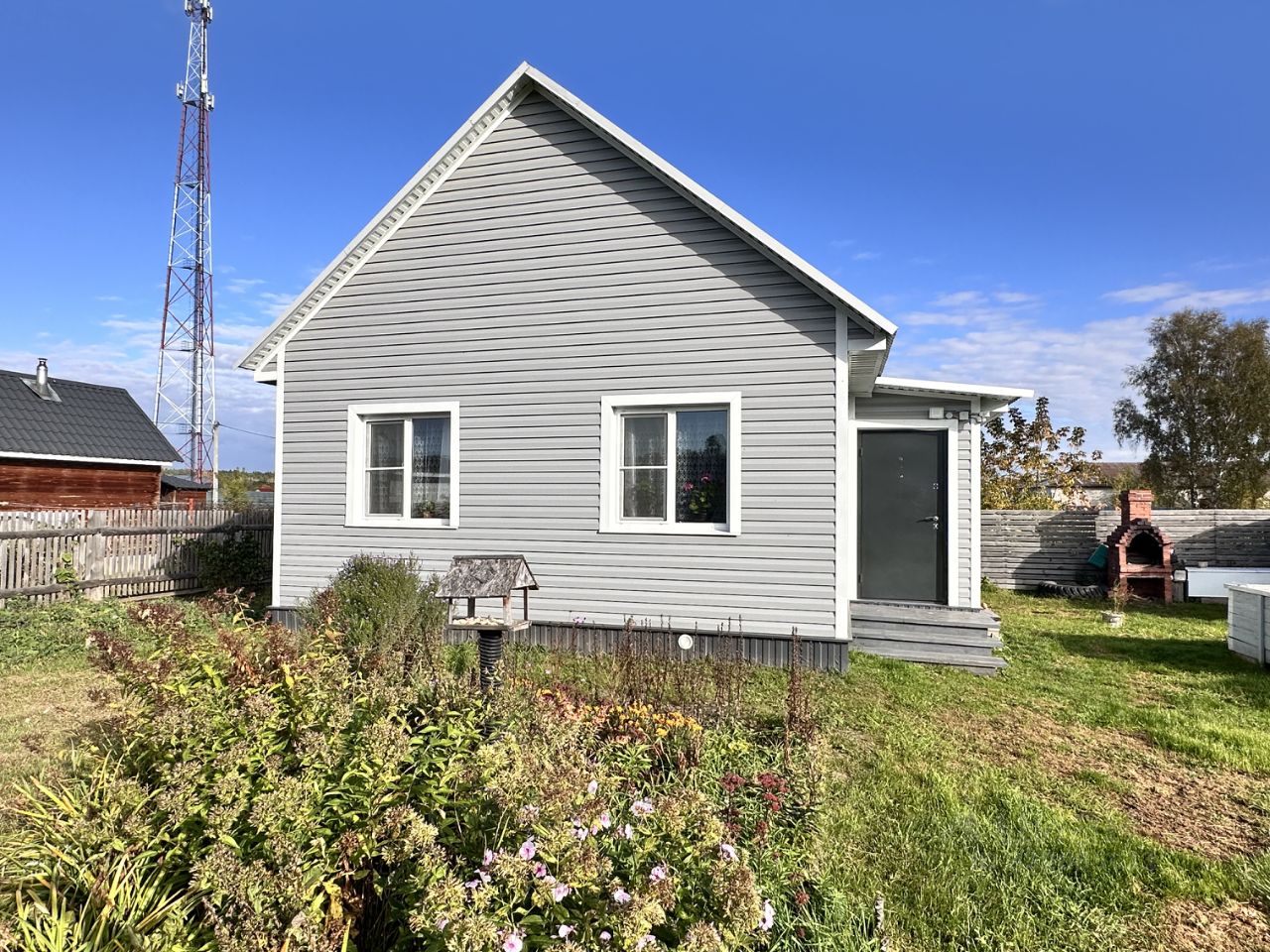 Характеристики: •Общая площадь дома — 33,6 м² •Участок — 7,6 соток •Материал стен — брус 100150 с утеплением и металлическим заводским сайдингом •Внутренняя отделка — вагонка штиль из лиственницы •Фундамент — винтовые сваи 2,5 м •Кровля — металлочерепица, конфигурация под мансарду (возможность сделать второй этаж) •Электрическое отопление — современно и безопасно •Электричество — 15 кВт, новый трансформатор •Центральная вода в доме, мощный септик на 8 кубов •Газ по границе участка •На участке есть баня и другие хоз. постройки.