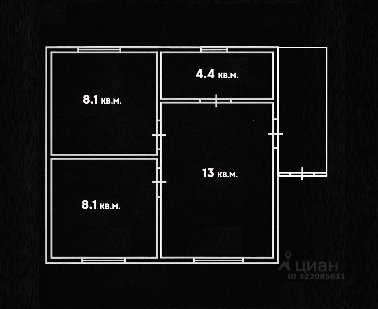 Общая площадь33,6 м2