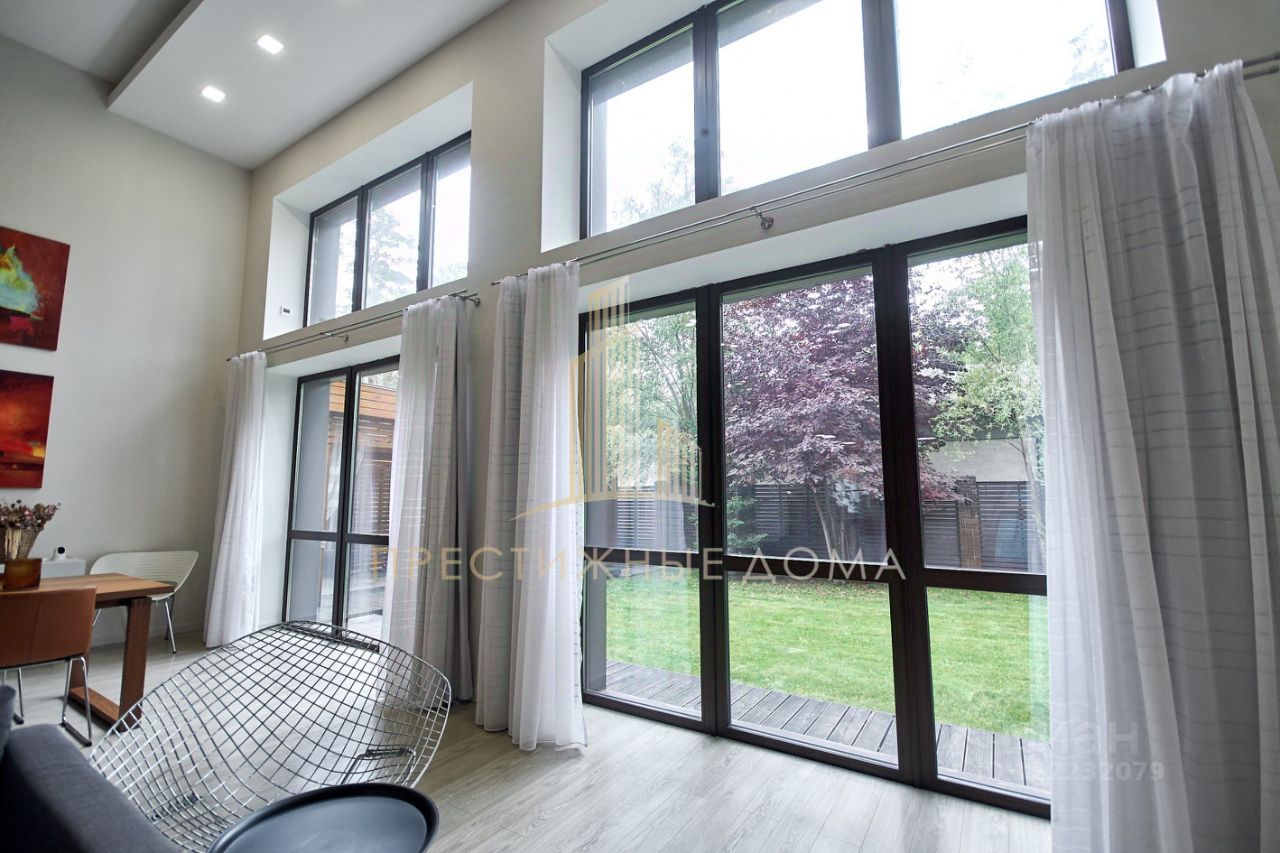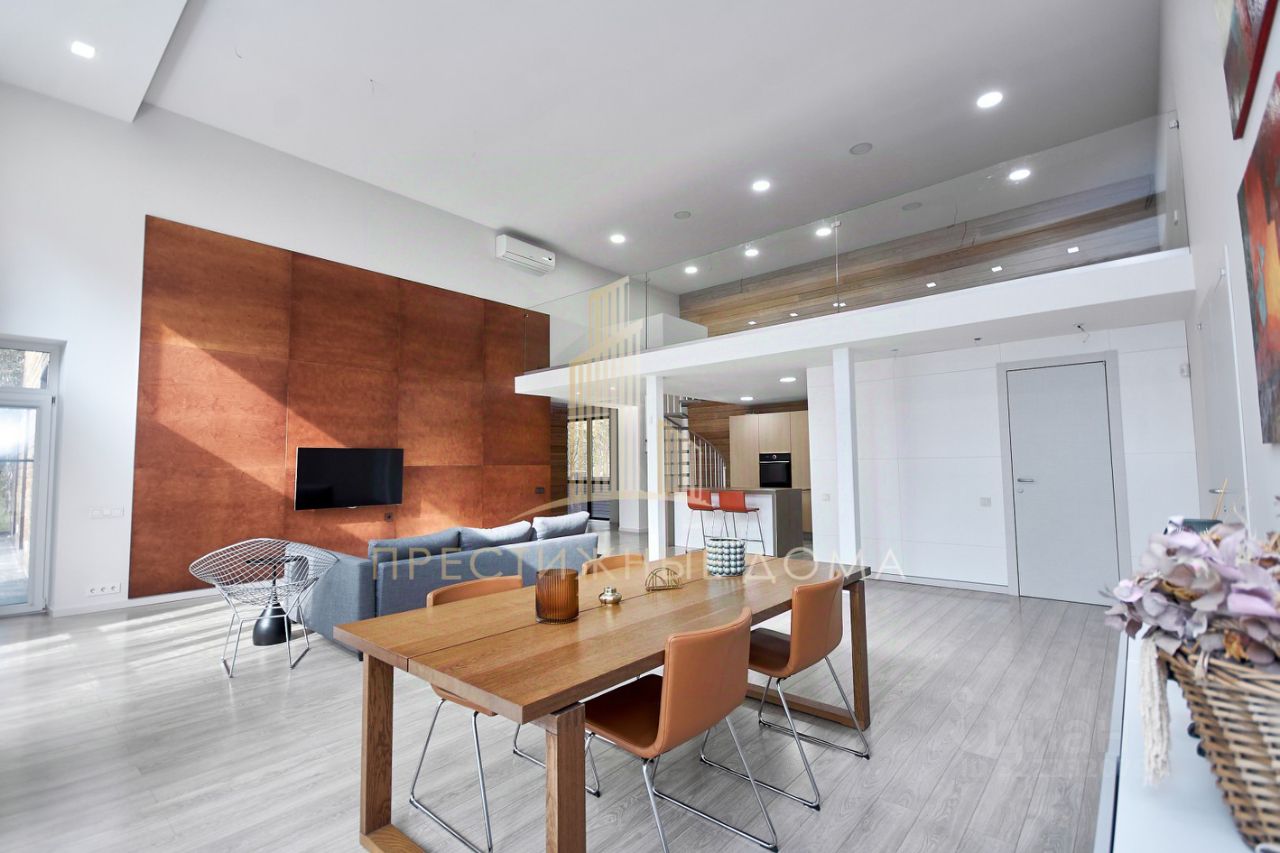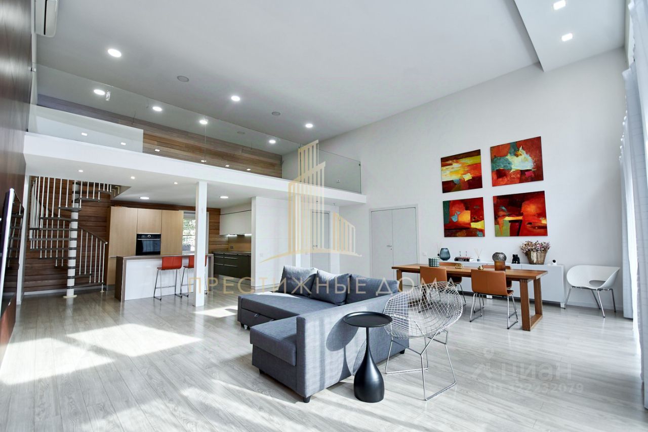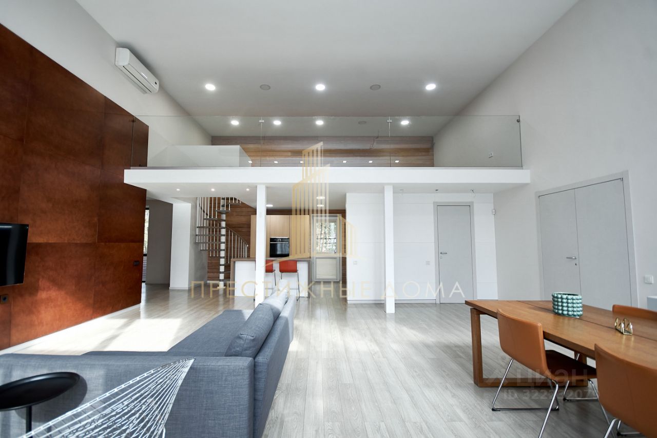 О доме: Кирпичный Внешняя отделка - обработанная лиственница Одноэтажный, со вторым светом Высота потолков - в гостиной 6 м., в комнатах 3 м. Панорамное остекление Эргономичная планировка Кондиционирование Теплый пол Видеонаблюдение на всем периметре Полностью укомплектован всей необходимой техникой и мебелью европейских производителей Немецкая, деревянная лестница