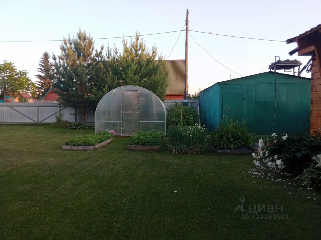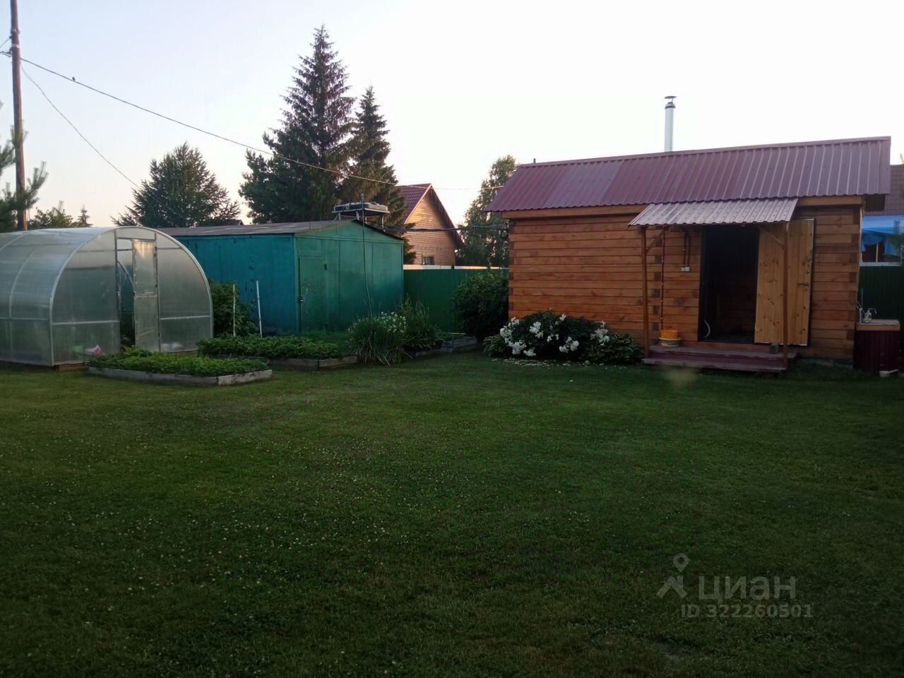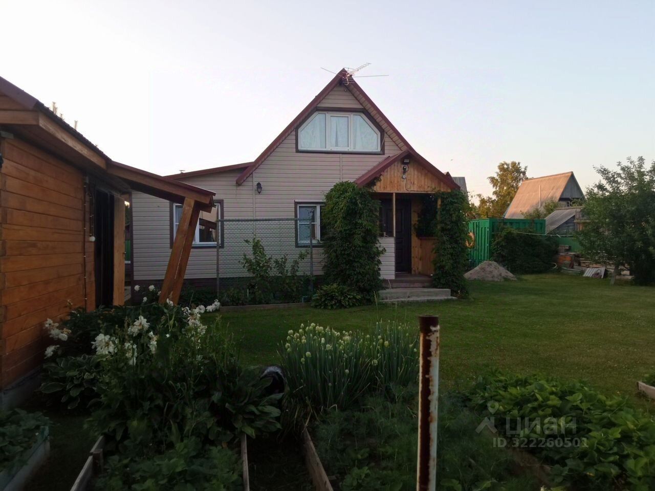 Дом построен в 2015 году из бруса, общая площадь — 40 кв. м, жилая — 22 кв. м, площадь кухни — 10 кв. м. Участок 6 соток, на нём есть баня. Дом подходит для круглогодичного проживания: есть электричество, водоснабжение (скважина), отопление электрическое.