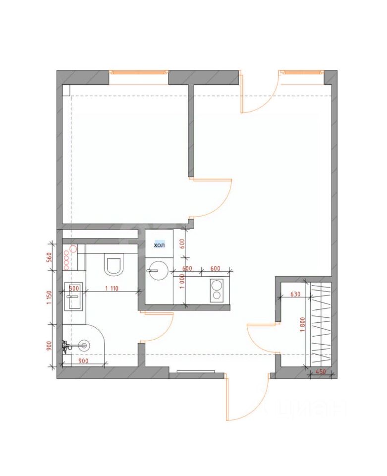 Остается в квартире: кухонный гарнитур, варочная панель, холодильник, кровать, стол, стулья, тумба с раковиной, стиральная машина, душевая, шторы.